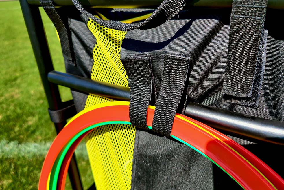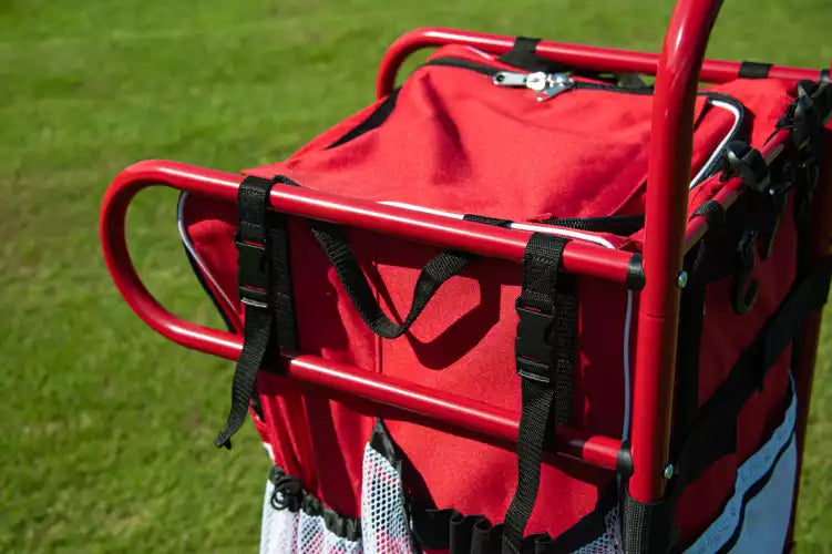 This Multisport Equipment Cart is designed as the ideal solution for simplifying training logistics, allowing you to transport all your gear and balls with ease. Its purpose is to streamline your coaching sessions and equipment storage. The cart features an integrated tactical board, all-terrain transport wheels, and an anti-corrosion treated structure, ensuring durability. It includes a transport bag for detachable bibs, hook-and-loop fasteners for various equipment, and reinforced bottom space for slalom pegs. This durable multisport cart is built for easy equipment transport, providing an anti-corrosion and highly versatile storage solution (sold without equipment, tactical shelf included).